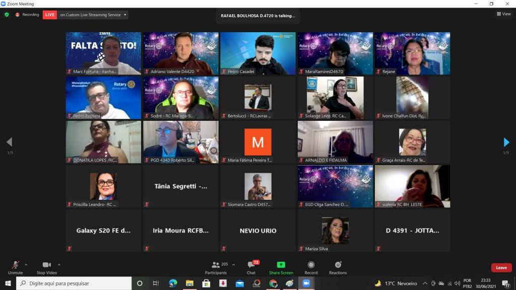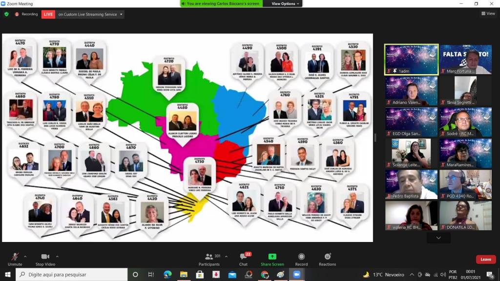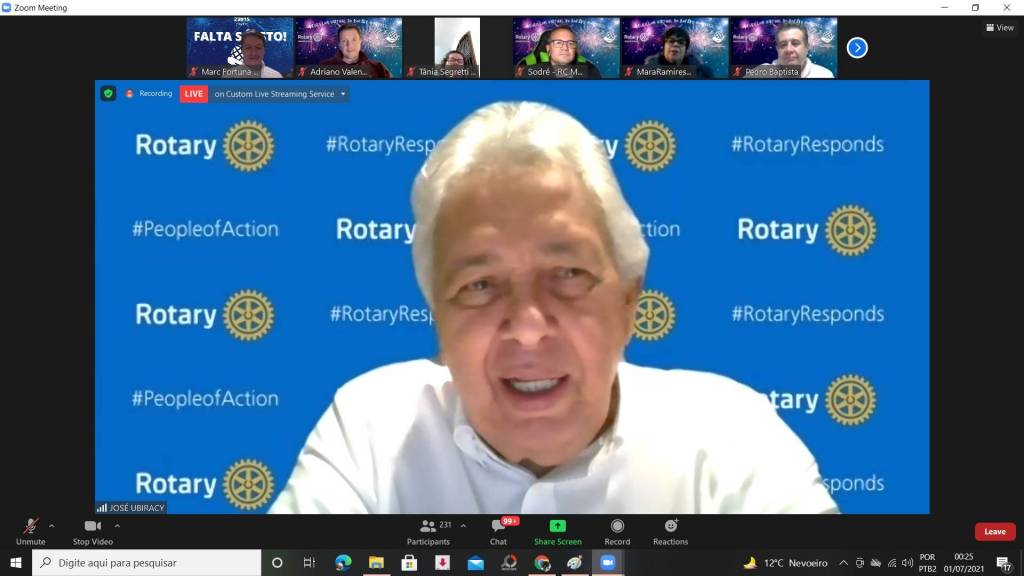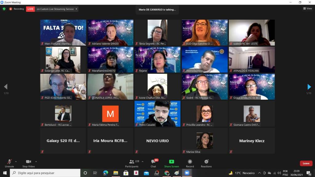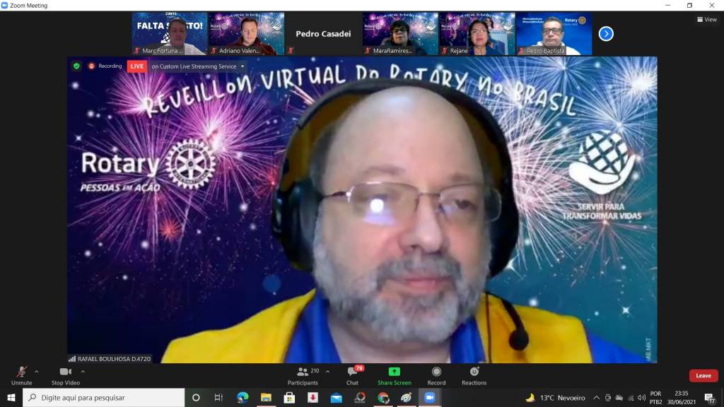 Na virada da noite do dia 30/06 para o dia 01/07, quando iniciou-se o Ano Rotário 2021-2022 sob o lema "Servir Para Transformar Vidas", tivemos de forma virtual o Réveillon do Rotary Brasil, com a participação de centenas de rotarianos de todos os distritos de nosso país.