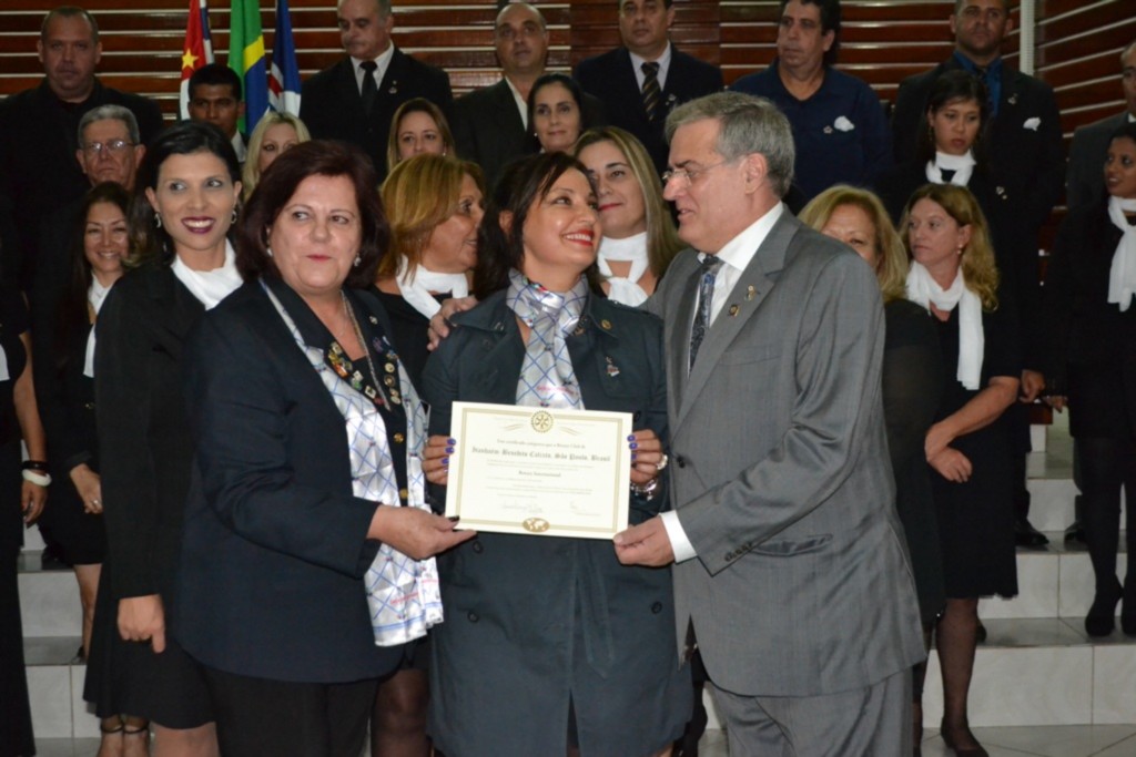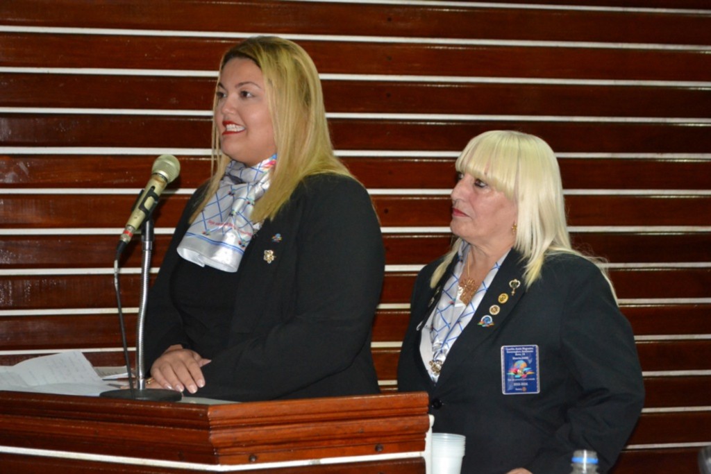 A governadora também fez seus agradecimentos, em especial ao presidente do DQA Marcos Zanardo, por sua brilhante atuação ao longo de sua gestão, contribuindo significativamente para o crescimento do quadro associativo. Ela parabenizou a presidente Ariádina pela coragem e determinação em fundar um novo clube e por seu compromisso com o servir. Para a governadora, todos os novos sócios são um presente para o distrito, mas acima de tudo, para o mundo que precisa de suas ideias e esforços para continuar trabalhando pelo ideal de servir;
